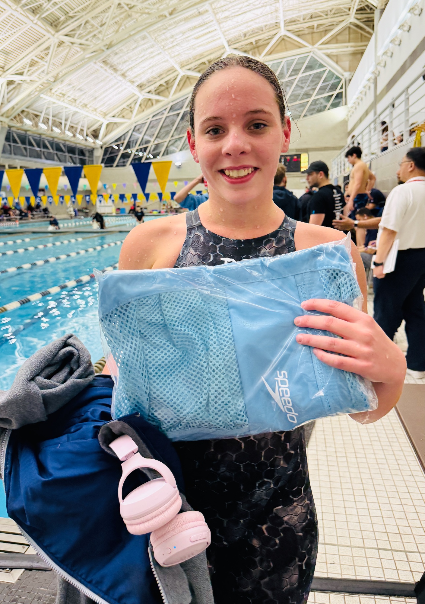 Sophia Atkins, 15 years old, placed 5th in the 200 backstroke and achieved five Personal Best Performances!