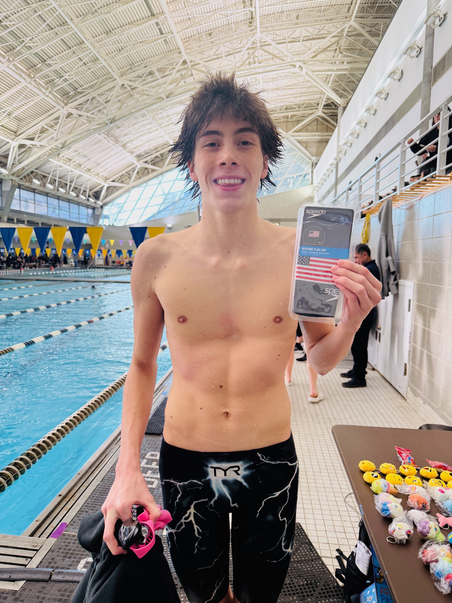 Christopher Bach, age 16, 1st place in the 100 freestyle, 2nd place in the 200 butterfly, achieving Personal Best Performances in all events !